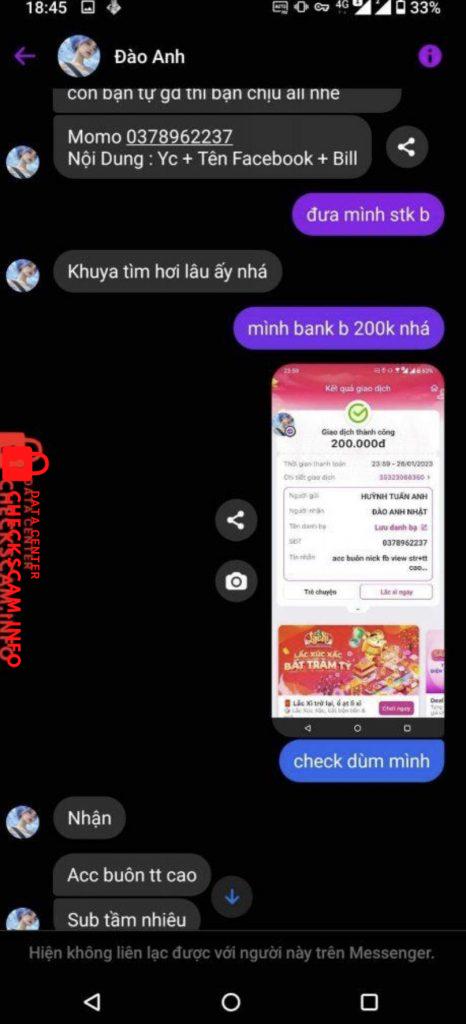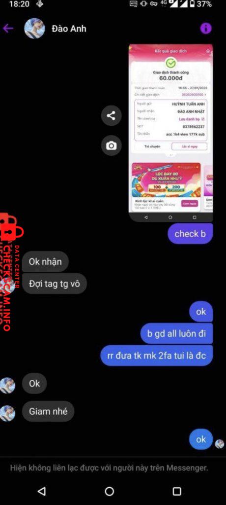 Scammer Alert: Đào Anh Nhật Reported: November 16, 2024 Scammer Information Full Name: Đào Anh Nhật Phone Number: 0349732273 Payment Gate: Mbbank Payment Account: 033339399999 Category: Marketplace scams Source: Checkscam Evidence Files Report Description Mong à min sẽ hoàn tiền ạ Và xét duyệt ạ Comments Your comment Add Comment No comments yet. Be the first to share your experience with this scammer.
