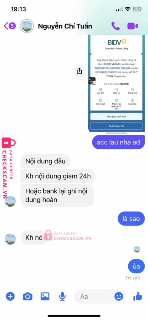 Scammer Alert: DAO DUY GIEI Reported: November 16, 2024 Scammer Information Full Name: DAO DUY GIEI Payment Gate: Mb Bank / Momo Payment Account: 0963262219 Category: Marketplace scams Source: Checkscam Evidence Files Report Description Fake Người Khác, Để Dễ Lừa Người Khác, MÌNH MUỐN BÁO CÁO ĐỂ MỌI NGƯỜI NÉ TÊN FAKE ĐÓ RA Comments Your comment Add Comment No comments yet. Be the first to share your experience with this scammer.