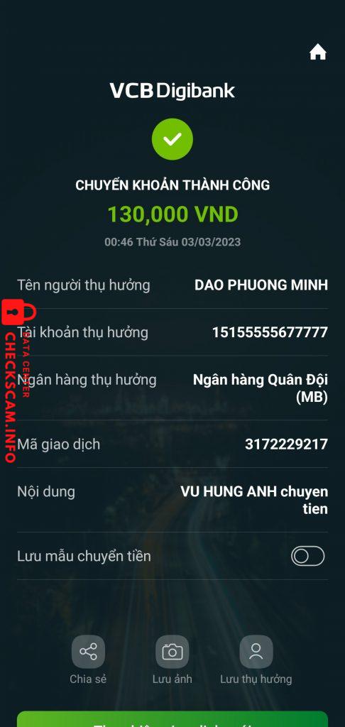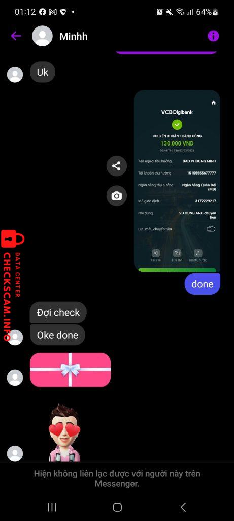 Scammer Alert: DAO PHUONG MINH Reported: November 16, 2024 Scammer Information Full Name: DAO PHUONG MINH Payment Gate: MB bank Payment Account: 15155555677777 Category: Marketplace scams Source: Checkscam Evidence Files Report Description Comments Your comment Add Comment No comments yet. Be the first to share your experience with this scammer.