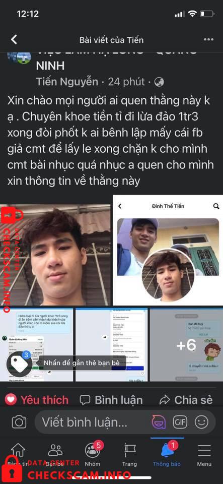 Xin chào mọi người ai quen thằng này k ạ . Chuyên khoe tiền tỉ đi lừa đảo 1tr3 xong đòi phốt k ai bênh lập mấy cái fb giả cmt để lấy le xong chặn k cho mình cmt bài nhục quá nhục a quen cho mình xin thông tin về thằng này