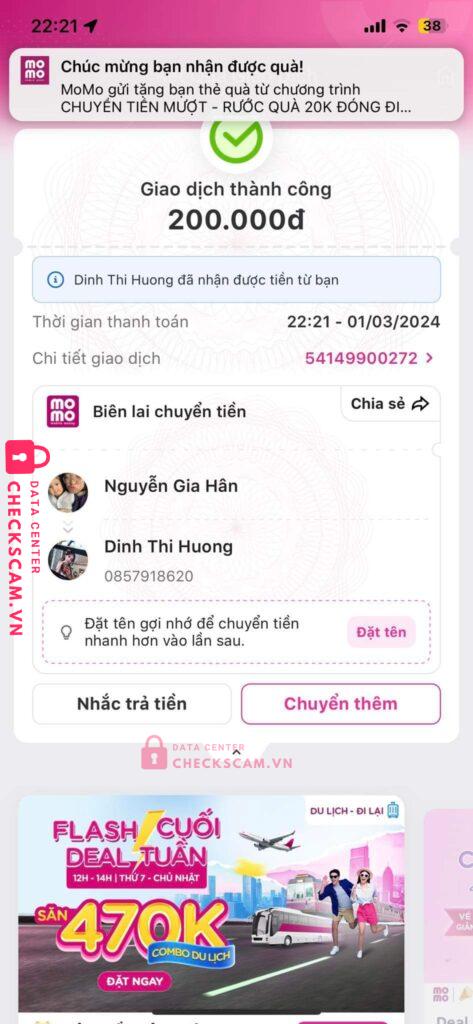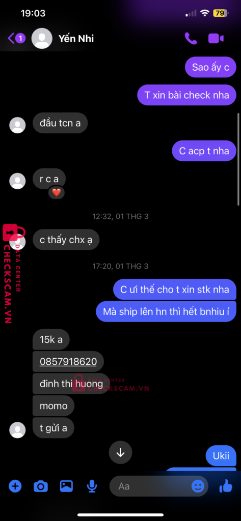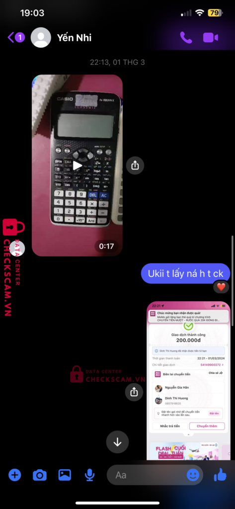 Scammer Alert: DINH THI HUONG Reported: November 16, 2024 Scammer Information Full Name: DINH THI HUONG Payment Gate: Momo Payment Account: 0857918620 Category: Marketplace scams Source: Checkscam Evidence Files Report Description Lừa tiền mua máy tính casio ạ Comments Your comment Add Comment No comments yet. Be the first to share your experience with this scammer.