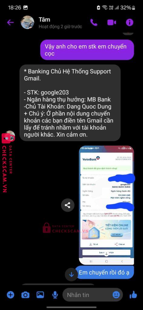 Scammer Alert: Đinh Văn Tâm Reported: November 16, 2024 Scammer Information Full Name: Đinh Văn Tâm Payment Gate: MBBANK Payment Account: google203 Category: Marketplace scams Source: Checkscam Evidence Files Report Description Lừa đảo khôi phục tài khoản google Comments Your comment Add Comment No comments yet. Be the first to share your experience with this scammer.