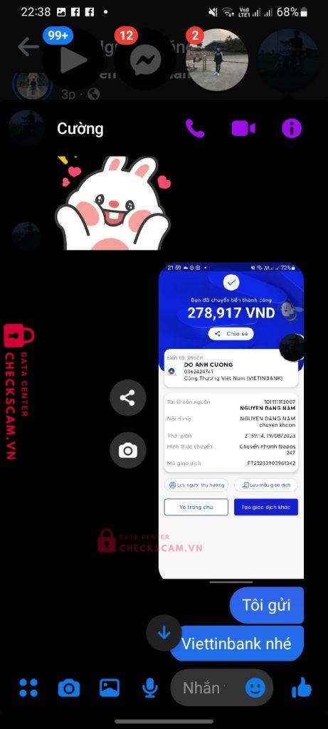 Scammer Alert: DO ANH CUONG Reported: November 16, 2024 Scammer Information Full Name: DO ANH CUONG Phone Number: 0362424741 Payment Gate: Viettinbank Payment Account: 0362424741 Category: Marketplace scams Source: Checkscam Evidence Files Report Description Nó scam 278 của toiu ae né nha Comments Your comment Add Comment No comments yet. Be the first to share your experience with this scammer.