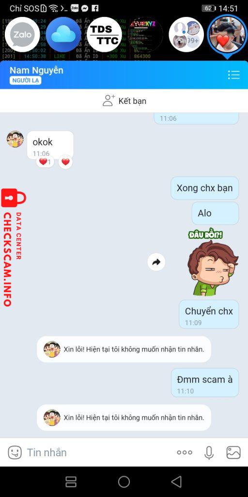Scammer Alert: Đỗ Công Hiếu Reported: November 16, 2024 Scammer Information Full Name: Đỗ Công Hiếu Phone Number: 0398097505 Payment Gate: Momo Payment Account: 0398097505 Category: Marketplace scams Source: Checkscam Evidence Files Report Description Scam 10k mua 1m xu tds Comments Your comment Add Comment No comments yet. Be the first to share your experience with this scammer.