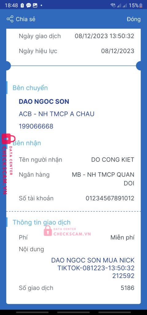 Scammer Alert: Đỗ công kiệt Reported: November 16, 2024 Scammer Information Full Name: Đỗ công kiệt Payment Gate: Mbbank Payment Account: 01234567891012 Category: Marketplace scams Source: Checkscam Evidence Files Report Description Bán acc tiktok sau đó rollback Comments Your comment Add Comment No comments yet. Be the first to share your experience with this scammer.