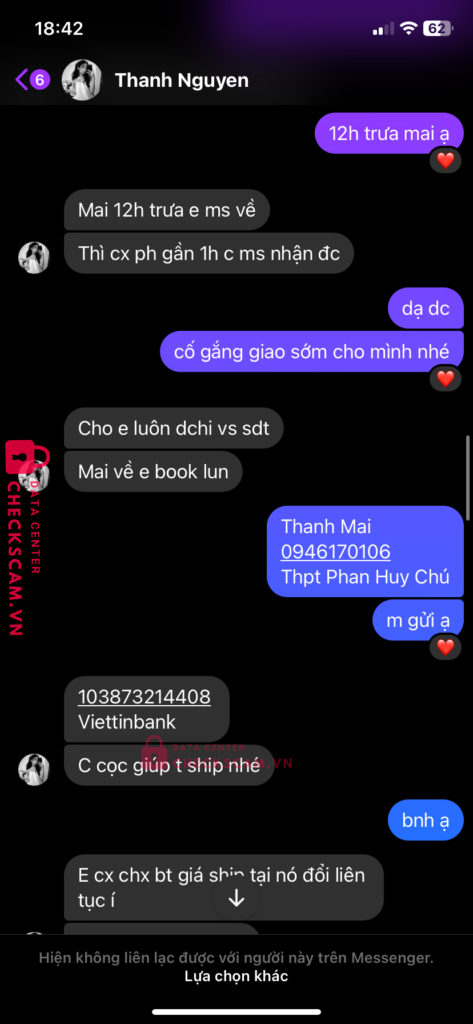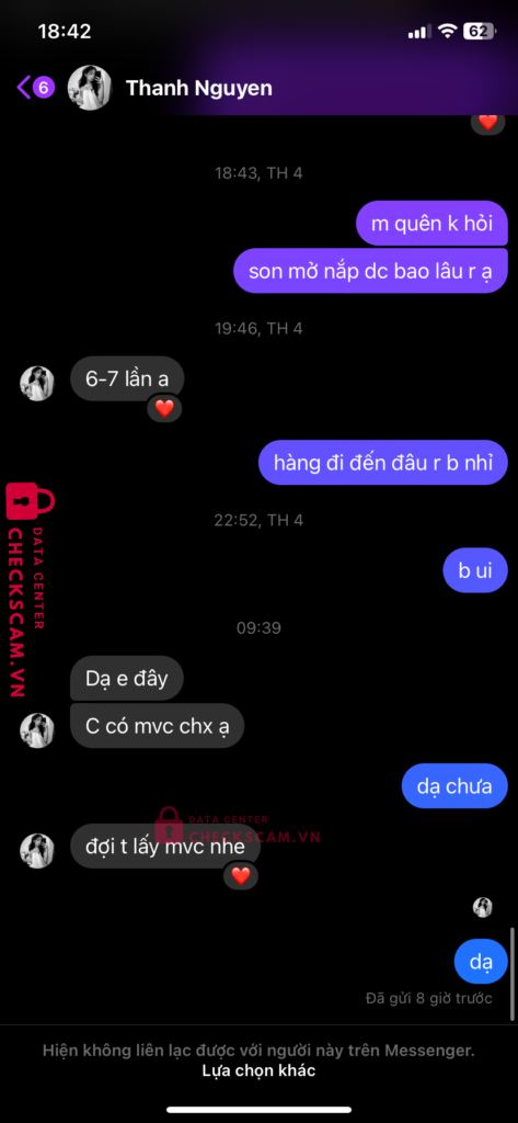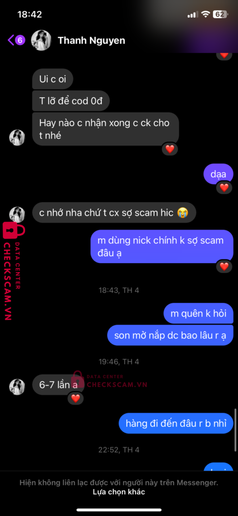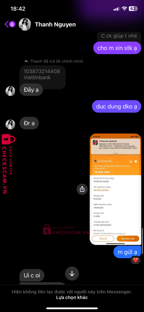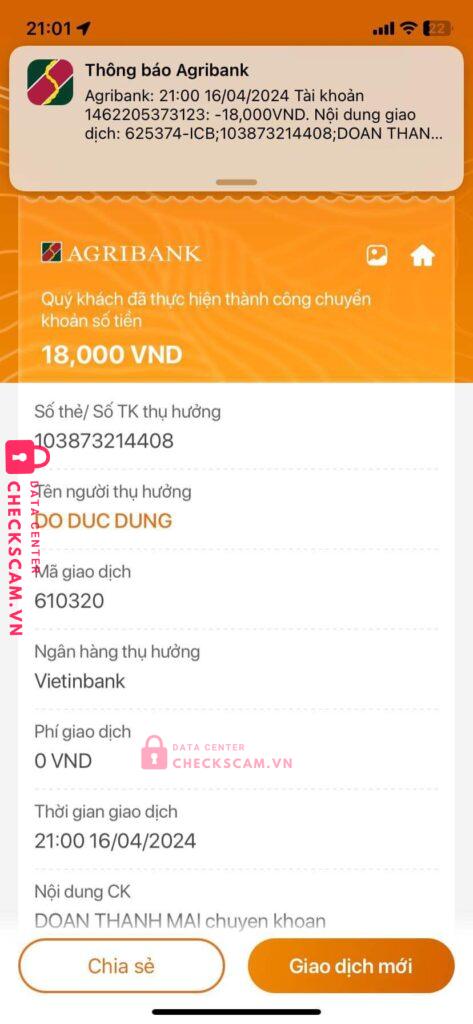 Scammer Alert: DO DUC DUNG Reported: November 16, 2024 Scammer Information Full Name: DO DUC DUNG Payment Gate: Vietinbank Payment Account: 103873214408 Category: Marketplace scams Source: Checkscam Evidence Files Report Description b này hay đăng bài trên gr “Pass Son, Mỹ Phẩm” để lừa tiền người khác, lấy hình ảnh của người khác để lừa đảo Comments Your comment Add Comment No comments yet. Be the first to share your experience with this scammer.