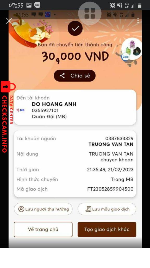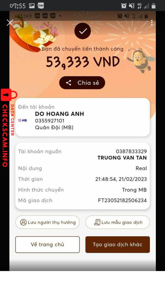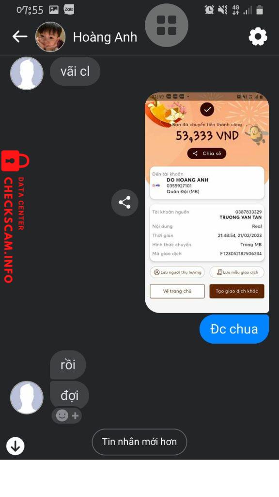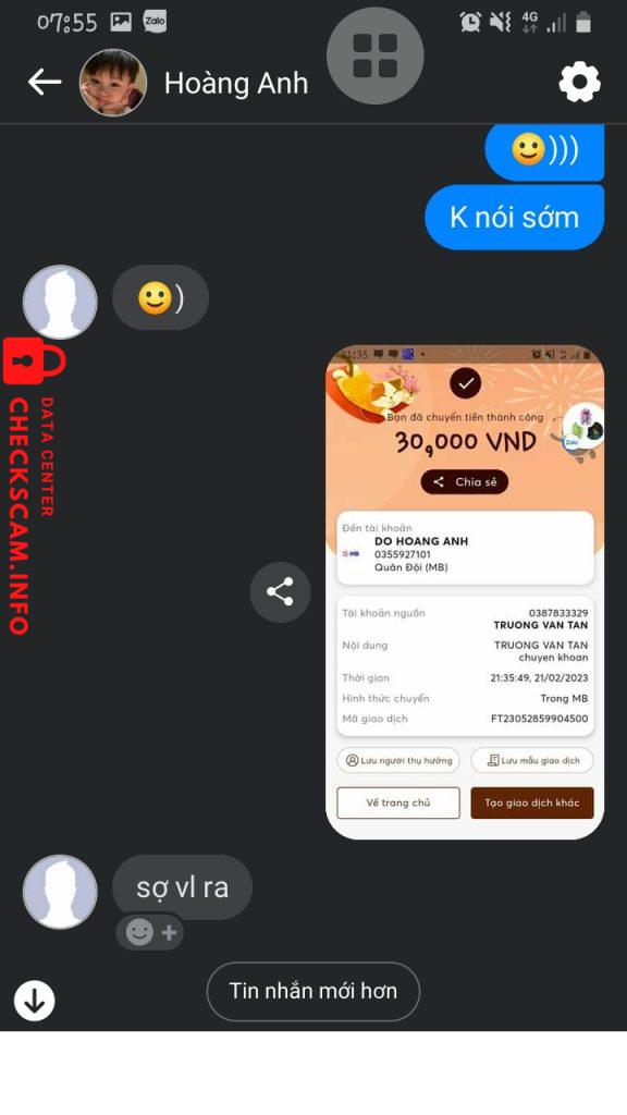 Scammer Alert: Đỗ hoàng anh Reported: November 16, 2024 Scammer Information Full Name: Đỗ hoàng anh Phone Number: 0355927101 Payment Gate: Mb bank Payment Account: 0355927101 Category: Marketplace scams Source: Checkscam Evidence Files Report Description Lừa đảo chiếm đoạt tài sản Comments Your comment Add Comment No comments yet. Be the first to share your experience with this scammer.