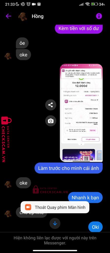 Scammer Alert: ĐỖ HỒNG QUÂN Reported: November 16, 2024 Scammer Information Full Name: ĐỖ HỒNG QUÂN Payment Gate: Momo Payment Account: 0344917657 Category: Marketplace scams Source: Checkscam Evidence Files Report Description Mong ad cho nó lên web ạ cho mn né nó ra làm video mà 12k cũng scam chịu Comments Your comment Add Comment No comments yet. Be the first to share your experience with this scammer.