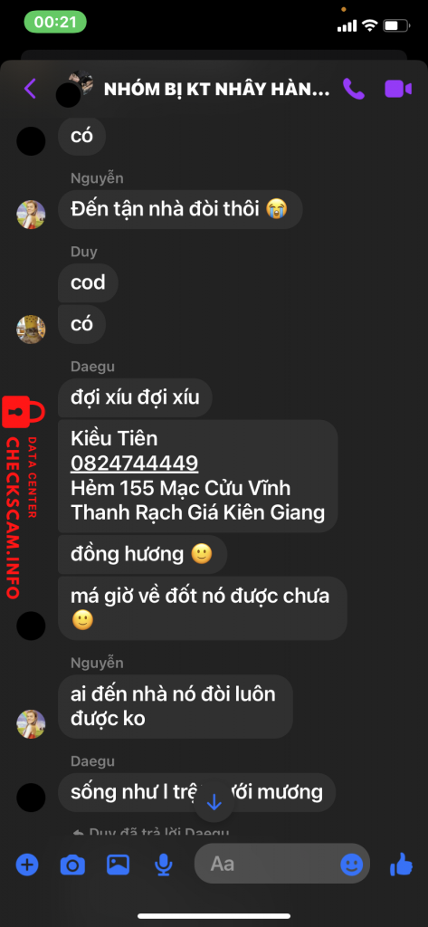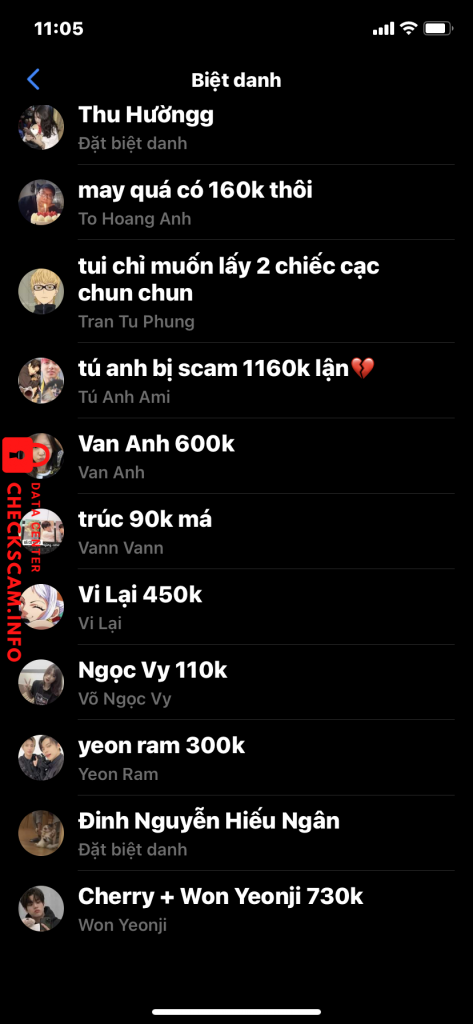 Thông tin chi tiết của scammer :