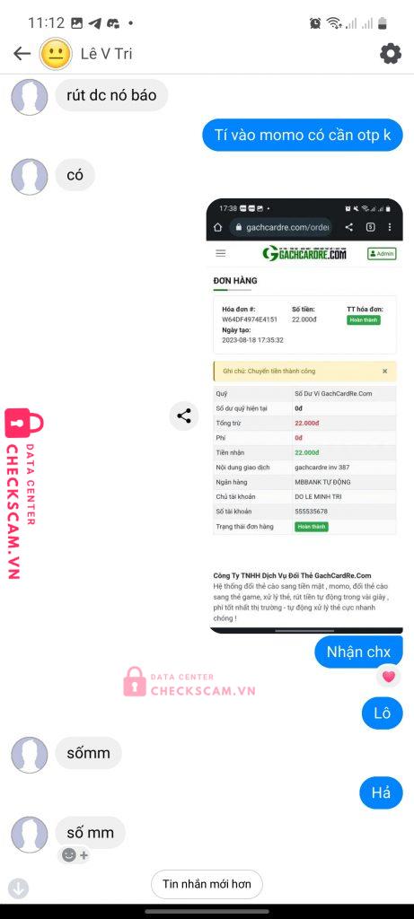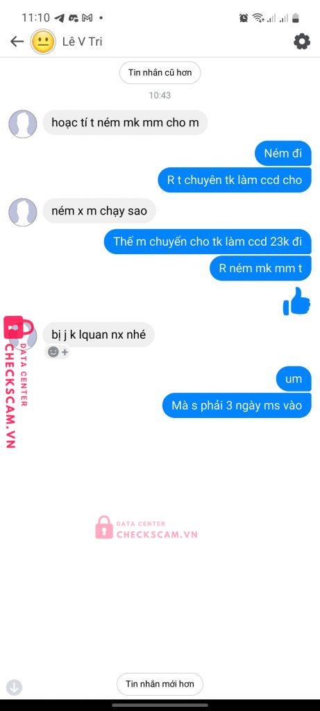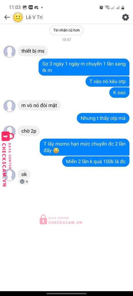 Mình nhờ thằng này lấy lại momo bị khóa (đg để 2l6 trong tk) khi mở được nó bảo 3 ngày sau mới log được mà mình log vào vẫn được, mình kêu nó gửi mật khẩu momo cái nó block fb mình.
