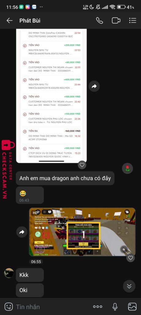 Lúc đầu thấy livestream của khứa fake ( tôi không biết nó là fake) này trên tiktok có bán dragon token giá 400k, thì tôi ibox hỏi mua dra token + bù thêm trái dra tây để giảm giá tiền xuống 150k thì nó đồng ý, tôi cọc trước 150k đến lúc nó nhận đc 150k rồi thì hôm sau nó bảo đã bán cho người khác với giá 400k. Nó kêu đưa stk để nó hoàn tiền hoặc là đưa trước 4 trái dra tây,kit,gas,yeti để nó kiếm deal. Đến lúc đưa 150k + 4 trái kia rồi thì lại mất tâm, không chặn nhưng đã xem không rep, khi check thì thấy đã bị chặn nhận mình đã chơi ngu. sđt của hắn: 0333486511