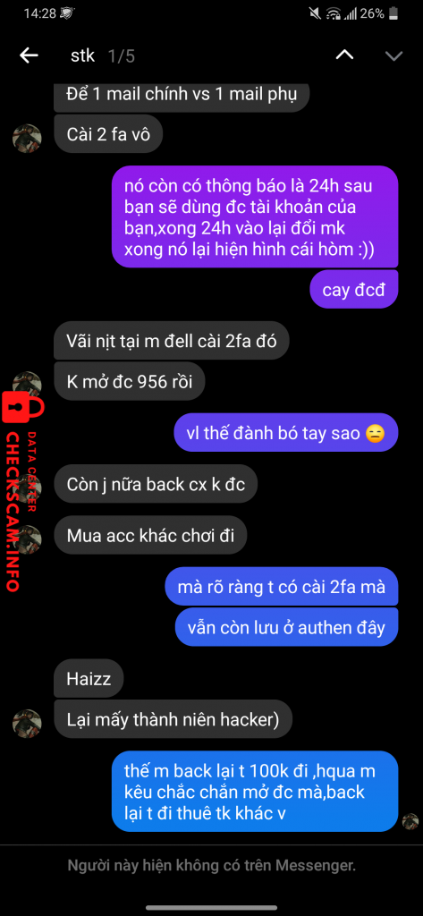 Scammer Alert: Do Minh Tri Reported: November 16, 2024 Scammer Information Full Name: Do Minh Tri Payment Gate: Mb bank Payment Account: 9704229208082429020 Category: Marketplace scams Source: Checkscam Evidence Files Report Description lừa đảo Comments Your comment Add Comment No comments yet. Be the first to share your experience with this scammer.