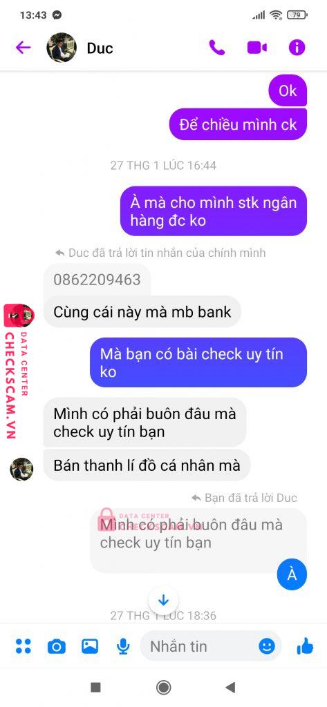 Scammer Alert: Do Ngọc Duc Reported: November 16, 2024 Scammer Information Full Name: Do Ngọc Duc Payment Gate: Mb bank Payment Account: 0862209463 Category: Marketplace scams Source: Checkscam Evidence Files Report Description Comments Your comment Add Comment No comments yet. Be the first to share your experience with this scammer.