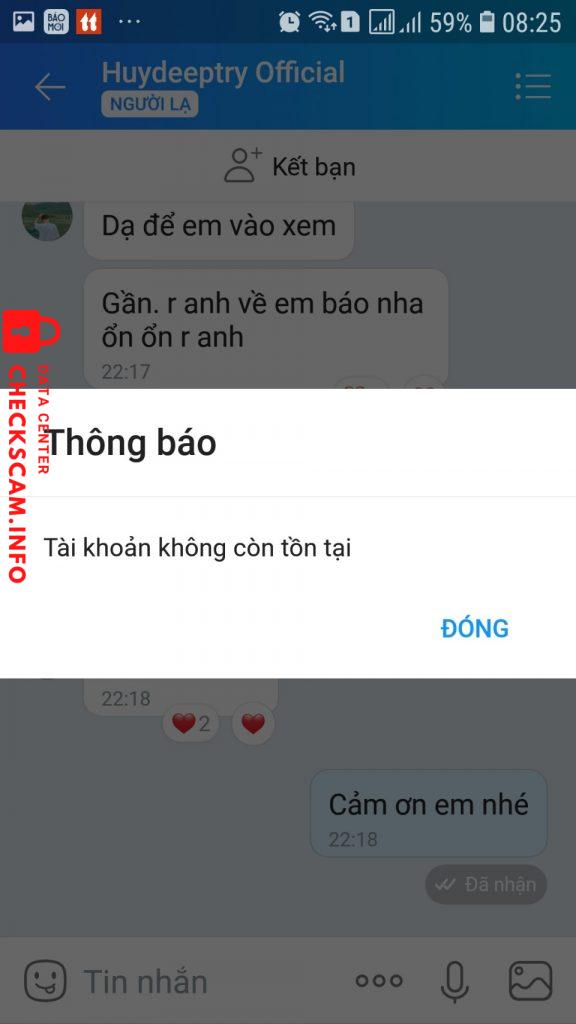 Scammer Alert: Đỗ Quang Huy Reported: November 16, 2024 Scammer Information Full Name: Đỗ Quang Huy Phone Number: 0978964716 Payment Gate: Agribank Payment Account: 4005205404395 Category: Marketplace scams Source: Checkscam Evidence Files Report Description Nhận mở khóa Fb 956, nhận tiền nhưng làm không được. Gọi điện không nghe máy, chặn zalo. Đề nghị cảnh giác đối tượng lừa đảo này. Comments Your comment Add Comment No comments yet. Be the first to share your experience with this scammer.