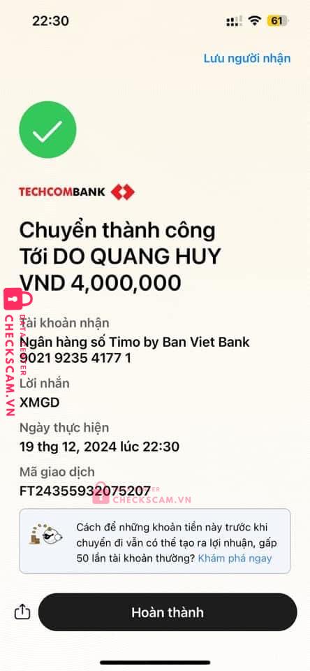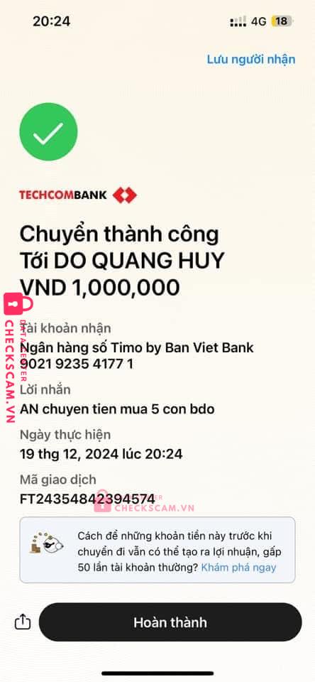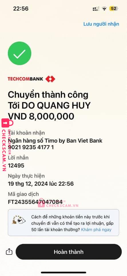 Scammer Alert: DO QUANG HUY Reported: March 7, 2025 Scammer Information Full Name: DO QUANG HUY Payment Gate: TECHCOMBank Payment Account: 9021923541771 Category: Marketplace scams Source: Checkscam Evidence Files Report Description Tổng Lừa 18tr Lừa Đảo Từ FC onl trên trang page Comments Your comment Add Comment No comments yet. Be the first to share your experience with this scammer.