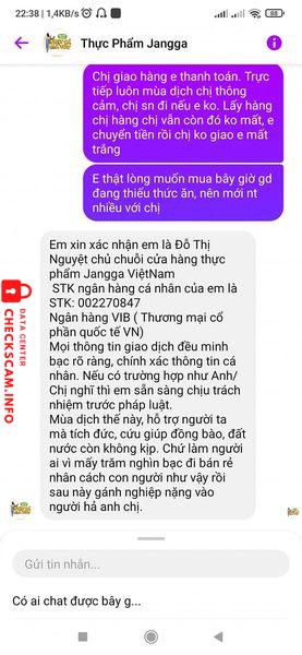 Fanpage Thực phẩm Jangga có hành vi mạo danh lừa đảo chiếm đoạt tài sản