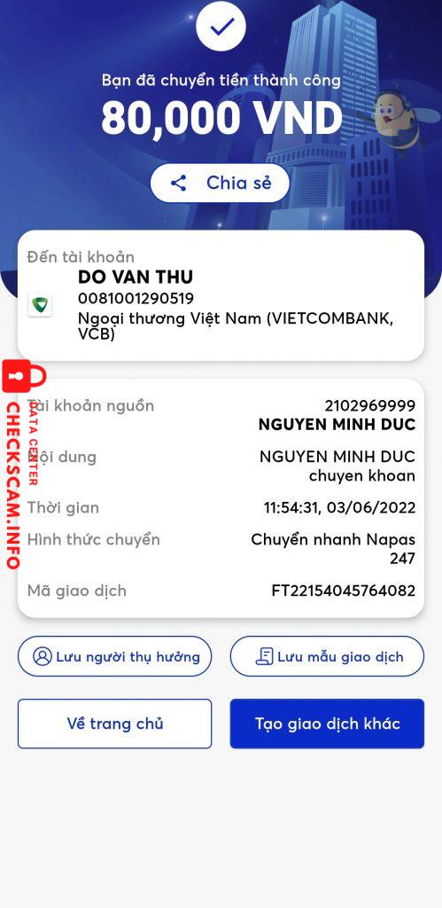 Scammer Alert: đỗ văn thu Reported: November 16, 2024 Scammer Information Full Name: đỗ văn thu Phone Number: 0364230630 Payment Gate: vietcombank Payment Account: 0081001290519 Category: Marketplace scams Source: Checkscam Evidence Files Report Description chuyển tiền xong là im luôn không rep. mà rep cũng nói theo kiểu chọc tức cảm ơn mình vì đã làm giàu cho họ. mà họ không gửi tài nguyên cho mình Comments Your comment Add Comment No comments yet. Be the first to share your experience with this scammer.
