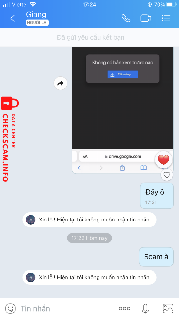 Scammer Alert: DO VIET GIANG Reported: November 16, 2024 Scammer Information Full Name: DO VIET GIANG Phone Number: 0385056392 Payment Gate: Mb bank Payment Account: 0385056392 Category: Marketplace scams Source: Checkscam Evidence Files Report Description Mua xong nói gửi link nhập xong đợi để gửi tut ai ngờ scam Comments Your comment Add Comment No comments yet. Be the first to share your experience with this scammer.