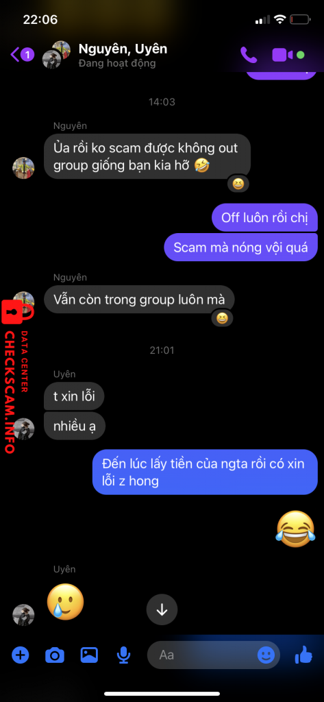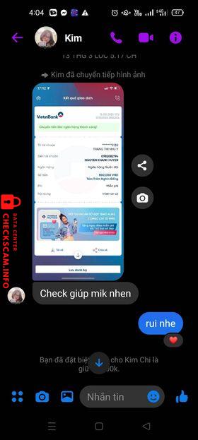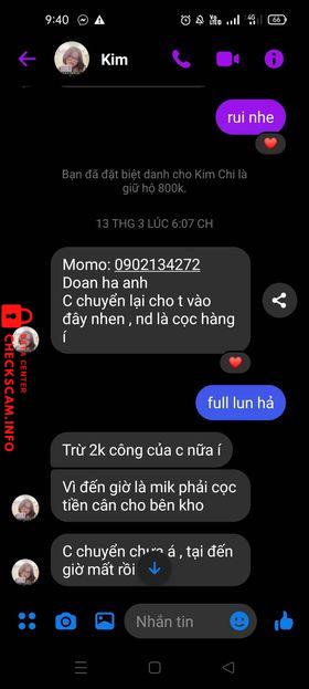 Scammer Alert: Doan Ha Anh Reported: November 16, 2024 Scammer Information Full Name: Doan Ha Anh Phone Number: 0902134272 Payment Gate: MB Bank Payment Account: 0902134272 Category: Marketplace scams Source: Checkscam Evidence Files Report Description Thay đổi rất nhiều tên nhưng chung stk, đi lừa đảo xong bị mình phát hiện, lừa đảo rất đầu tư, rất nhiều bạn bị lừa Comments Your comment Add Comment No comments yet. Be the first to share your experience with this scammer.
