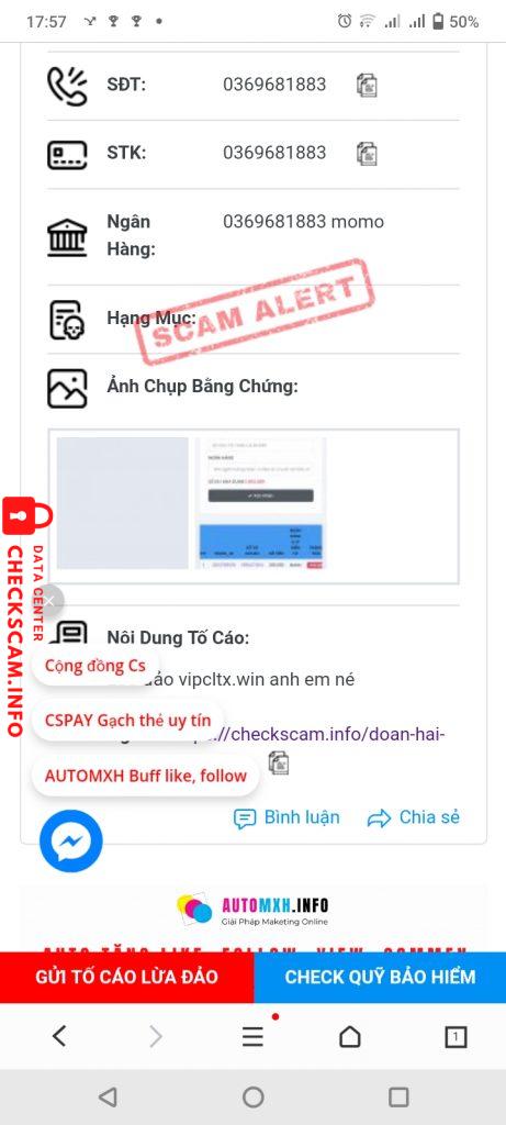 Scammer Alert: Đoàn Hải Sam - vipcltx.win