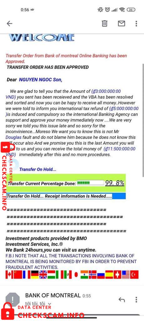Mn cho em hỏi ai đã nhận chuyển tiền thông qua NGÂN HÀNG NƯỚC NGOÀI chựa ạ, họ thông báo cho mình trên Gmail (hộp thư rác) đúng ko. Họ kêu em chuyển vô số tài khoản Đại diện Techcombank này: DOAN TAN DUNG – 19028491603022 lần lượt là 1TR với 3TR với lý do các hình ảnh ở dưới họ thông báo cho em, và cuối cùng bị đánh thuế họ kêu chuyển vào tài khoản này 5TR nhưng em sợ ko dám nộp nữa. Em bán điện thoại trên CHỢ TỐT nên có 1 ông ns ở Mỹ chuyển tiền cho em thông qa ngân hàng này, vì tiền đt là ổng trả 2TR5 mà ngân hàng bên đó chỉ cho chuyển qt là 3TR5, ổng kêu em chuyển vào số tk trên 1TR để ổng lấy lại, vì lý do chậm trễ của em họ bắt em nộp thêm 3TR và còn tiền thuế em chưa nộp ạ. Theo mn bh em phải làm sao để nhận lại số tiền đó, có phải BỌN LỪA ĐẢO ko ạ ?, e cảm ơn.