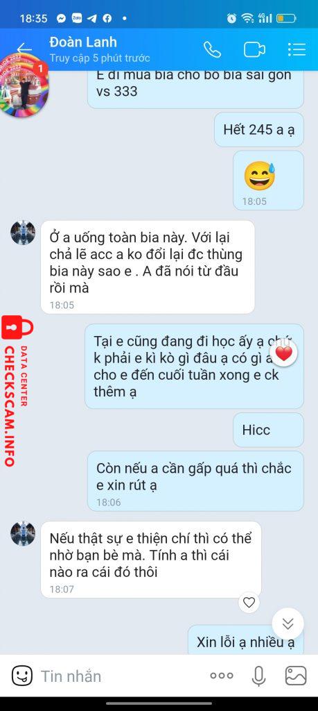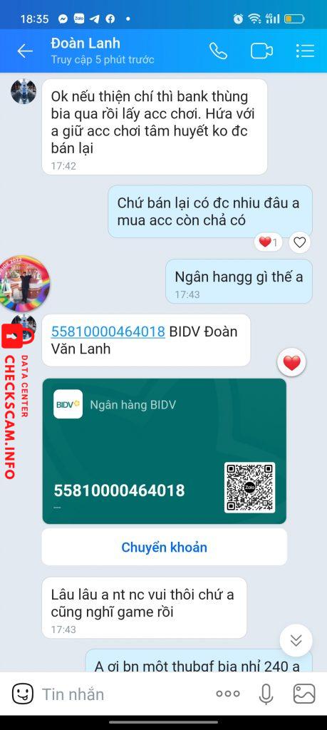 Scammer Alert: Đoàn Văn Lanh Reported: November 16, 2024 Scammer Information Full Name: Đoàn Văn Lanh Phone Number: 0973060425 Payment Gate: Bidv Payment Account: 55810000464018 Category: Marketplace scams Source: Checkscam Evidence Files Report Description Lừa đảo cho acc xong bảo gửi thùng bia dùng mọi mánh khoé để moi thêm tiền ae ruta kinh nghiệm trung gian nhé Comments Your comment Add Comment No comments yet. Be the first to share your experience with this scammer.