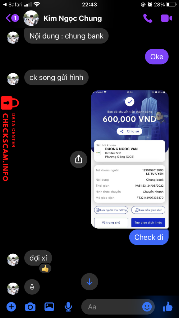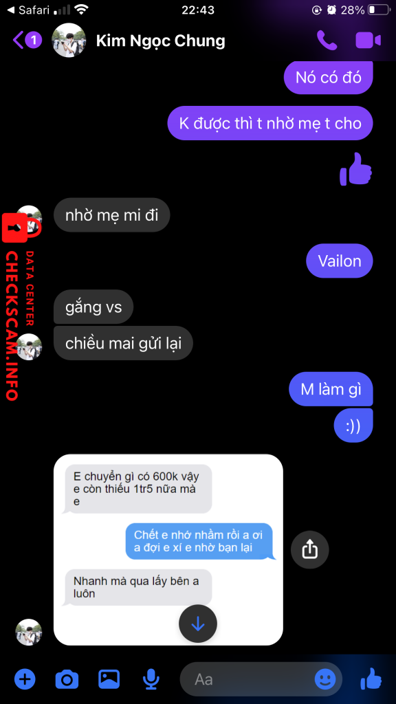 Scammer Alert: Duong Ngoc van Reported: November 16, 2024 Scammer Information Full Name: Duong Ngoc van Phone Number: 0783497221 Payment Gate: Ocb Payment Account: 0783497221 Category: Marketplace scams Source: Checkscam Evidence Files Report Description Nó hack nick bạn mình r vay tiền mình mà những đứa bạn khác ạ , tổng tiền nó vay là 2m Comments Your comment Add Comment No comments yet. Be the first to share your experience with this scammer.