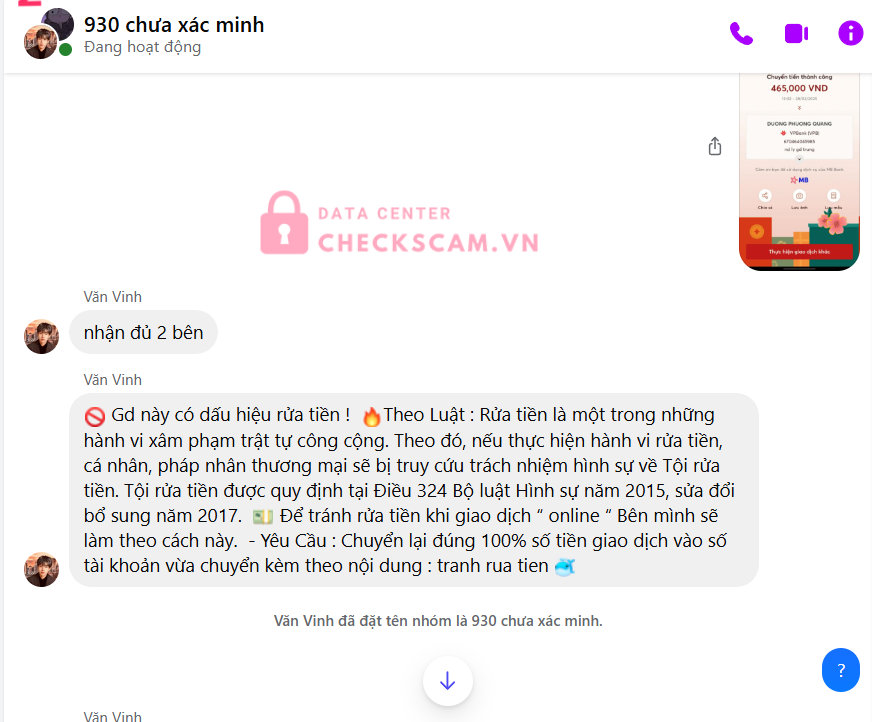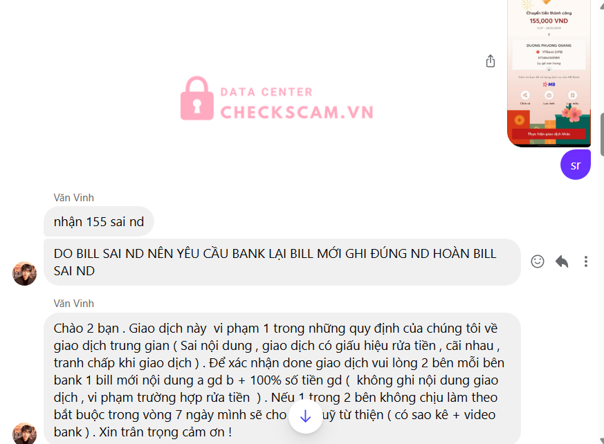 Scammer Alert: Dương Phương Quang Reported: March 7, 2025 Scammer Information Full Name: Dương Phương Quang Payment Gate: Vpbank Payment Account: 670464045985 Category: Marketplace scams Source: Checkscam Evidence Files Report Description cầm acc clone dô trao đổi mua bán đưa lí do rửa tiền hay nd sai các kiểu bay 775k Comments Your comment Add Comment No comments yet. Be the first to share your experience with this scammer.