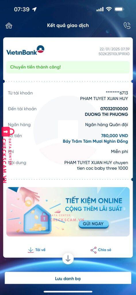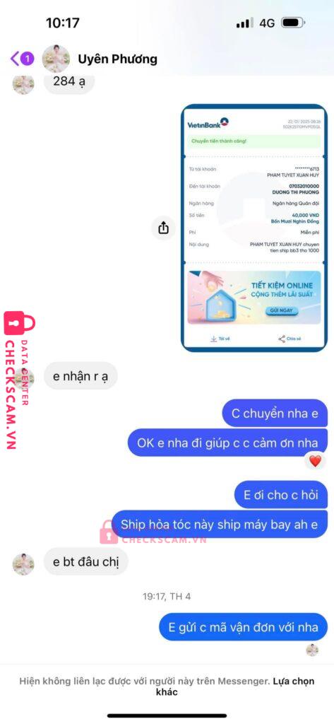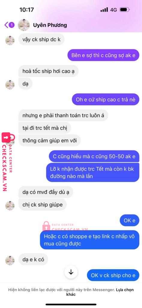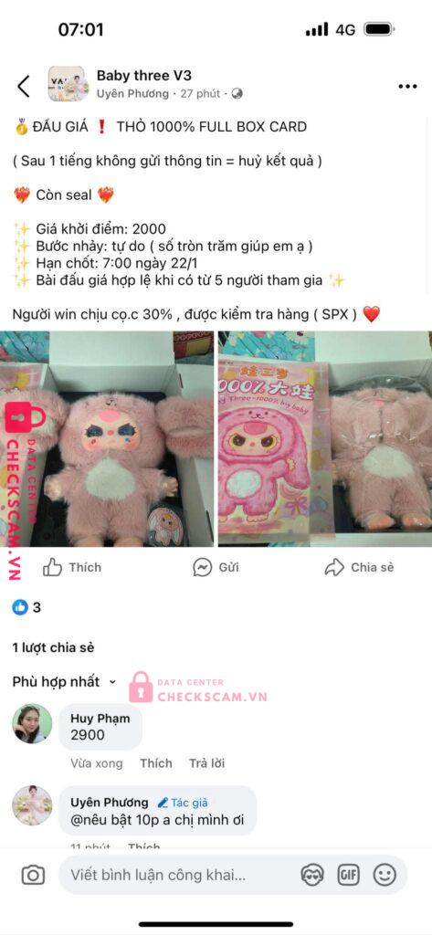 Chuyên xạo l tổ chức đấu giá baby three sau đó nằng nặc đòi ck full tiền với ship rồi sủi. Giờ tết tới nơi ai mà nhận ship nữa đâu, ac fb thì mỗi 2 bài đăng mà cũng tin. Cứ gdtt cho chắc ăn thôi. Mn cẩn thận