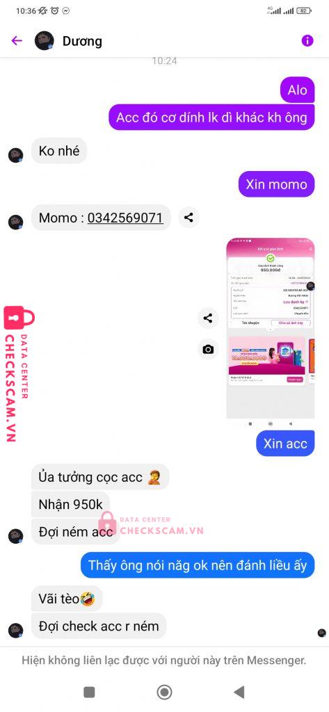 Scammer Alert: Duong Van Nhan Reported: November 16, 2024 Scammer Information Full Name: Duong Van Nhan Phone Number: 0342569071 Payment Gate: MOMO Payment Account: 0342569071 Category: Marketplace scams Source: Checkscam Evidence Files Report Description Admin group mà đi scamer Comments Your comment Add Comment No comments yet. Be the first to share your experience with this scammer.