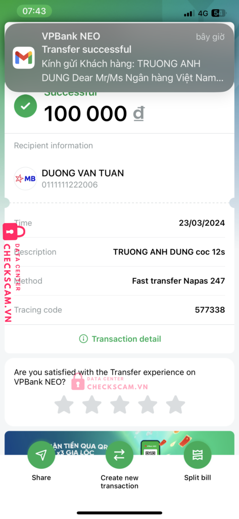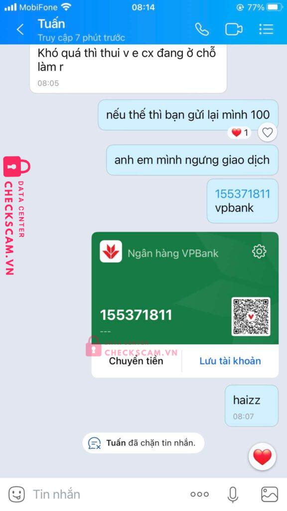Scammer Alert: DUONG VAN TUAN Reported: November 16, 2024 Scammer Information Full Name: DUONG VAN TUAN Payment Gate: MB Payment Account: 0111111222006 Category: Marketplace scams Source: Checkscam Evidence Files Report Description lừa gạt bán đt xiaomi 12s Comments Your comment Add Comment No comments yet. Be the first to share your experience with this scammer.