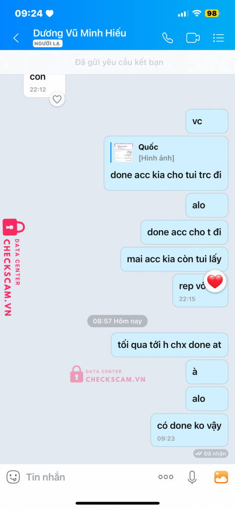 Scammer Alert: DƯƠNG VŨ MINH HIẾU