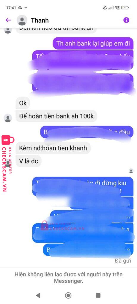 Né thằng này ra nha anh em nó fake cả link checkscam luon.Mua của nó chuyển xong nó đòi chuyển thêm làm xác nhận,rồi bảo nó chuyển lại đi không mua nữa thì nó bảo bank thêm 100k nó trả lại thằng này khôn lắm anh em cẩn thận