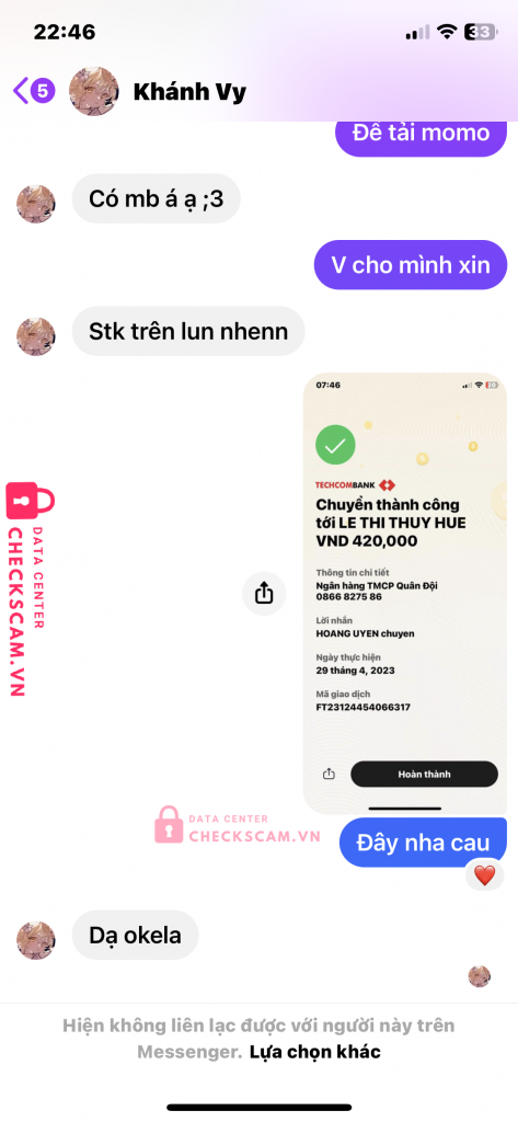 Scammer Alert: Fb: Khánh Vy Reported: November 16, 2024 Scammer Information Full Name: Fb: Khánh Vy Phone Number: 0907762853 Payment Gate: không rõ Payment Account: 0000000 Category: Marketplace scams Source: Checkscam Evidence Files Report Description Bán quần áo cosplay nma scam á ạ Comments Your comment Add Comment No comments yet. Be the first to share your experience with this scammer.