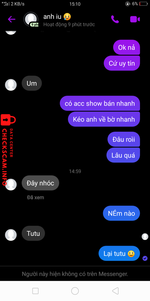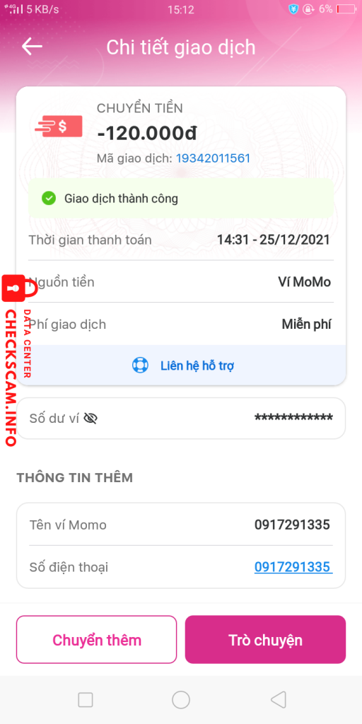 Scammer Alert: Gia Huy Reported: November 16, 2024 Scammer Information Full Name: Gia Huy Phone Number: 0917291335 Payment Gate: Momo Payment Account: 0917291335 Category: Marketplace scams Source: Checkscam Evidence Files Report Description bị scam 120k Comments Your comment Add Comment No comments yet. Be the first to share your experience with this scammer.
