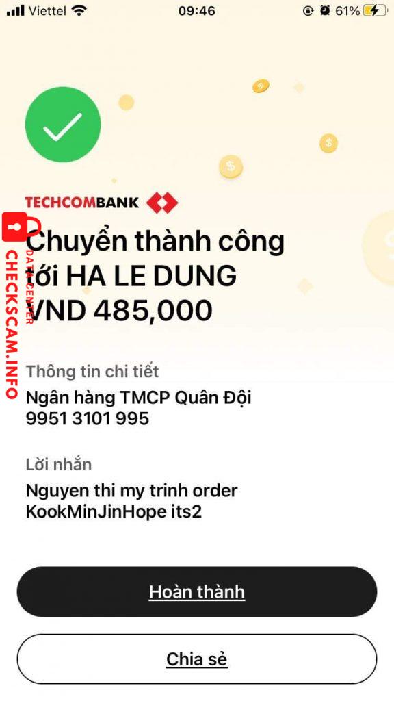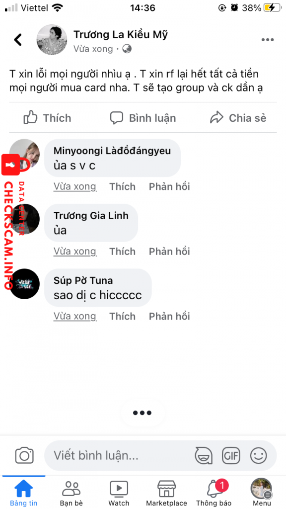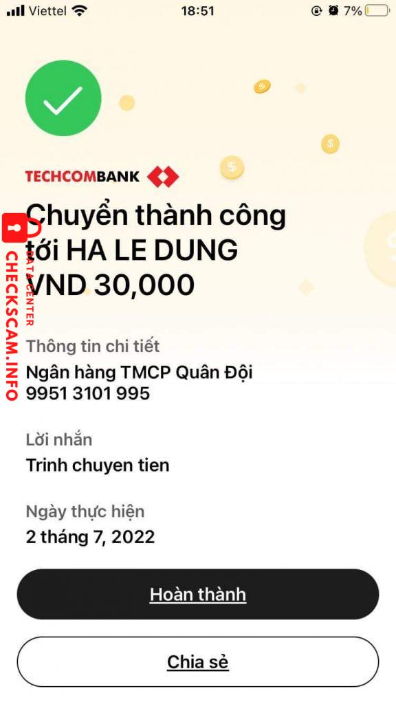 Scammer Alert: HA LE DUNG Reported: November 16, 2024 Scammer Information Full Name: HA LE DUNG Payment Gate: MB BANK Payment Account: 99513101995 Category: Marketplace scams Source: Checkscam Evidence Files Report Description Buôn bán lừa đảo. Tổng số bill mà mọi người tổng lên tới 30M. Chuyên lên deal card ảo. Đã khoá acc Facebook và chặn nhận tin nhắn bên zalo Comments Your comment Add Comment No comments yet. Be the first to share your experience with this scammer.