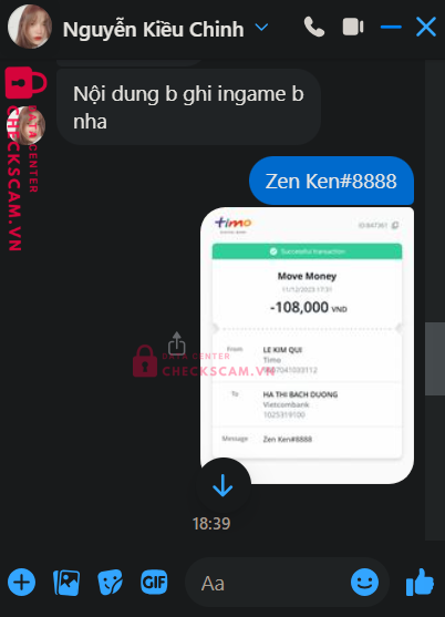 Scammer Alert: HA THI BACH DUONG Reported: November 16, 2024 Scammer Information Full Name: HA THI BACH DUONG Payment Gate: Vietcombank Payment Account: 1025319100 Category: Marketplace scams Source: Checkscam Evidence Files Report Description Lừa đảo bán RP chuyển khoảng xong chạy Comments Your comment Add Comment No comments yet. Be the first to share your experience with this scammer.