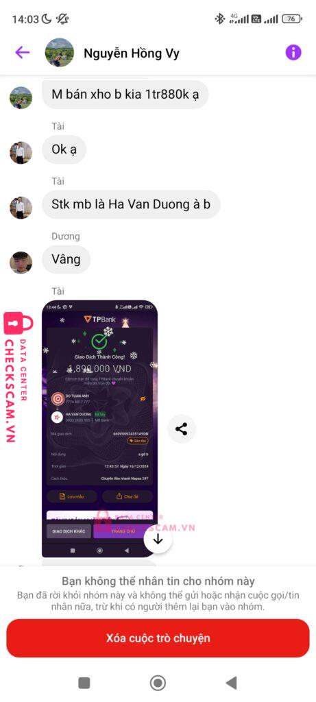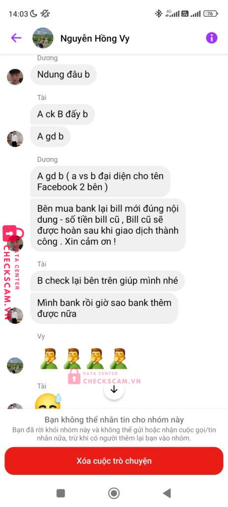 Trung gian mua tk Tiktok. Nó note cho mình nội dung ck là a gd b. Mình ghi đúng như thế nó báo là sai nội dung bắt chuyển lần nữa. Mình không chuyển thì giờ nó xóa khỏi cuộc chat và chặn luôn