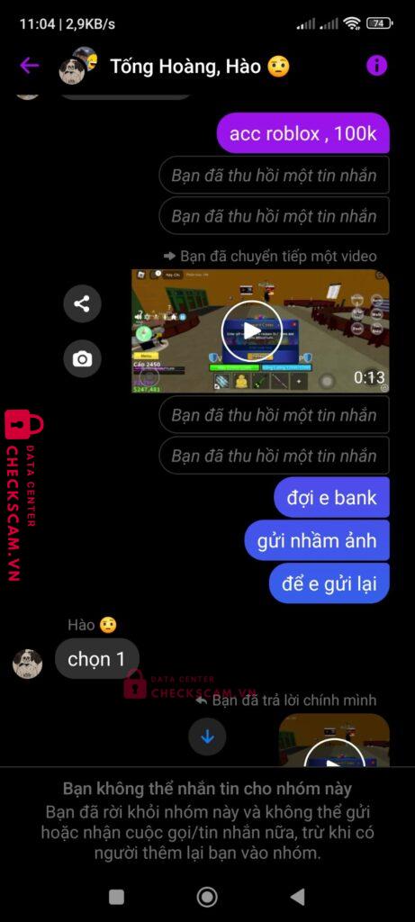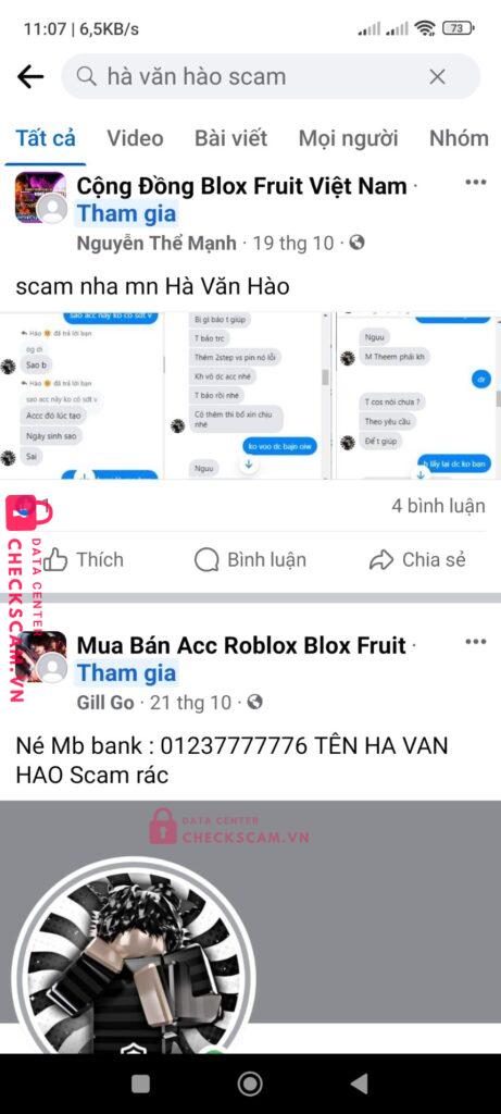 Scammer Alert: HA VAN HAO Reported: November 16, 2024 Scammer Information Full Name: HA VAN HAO Payment Gate: MB Bank Payment Account: 01237777776 Category: Marketplace scams Source: Checkscam Evidence Files Report Description lừa đảo bán acc , back acc roblox rất nhiều người Comments Your comment Add Comment No comments yet. Be the first to share your experience with this scammer.