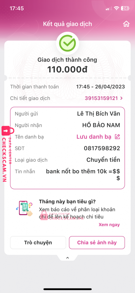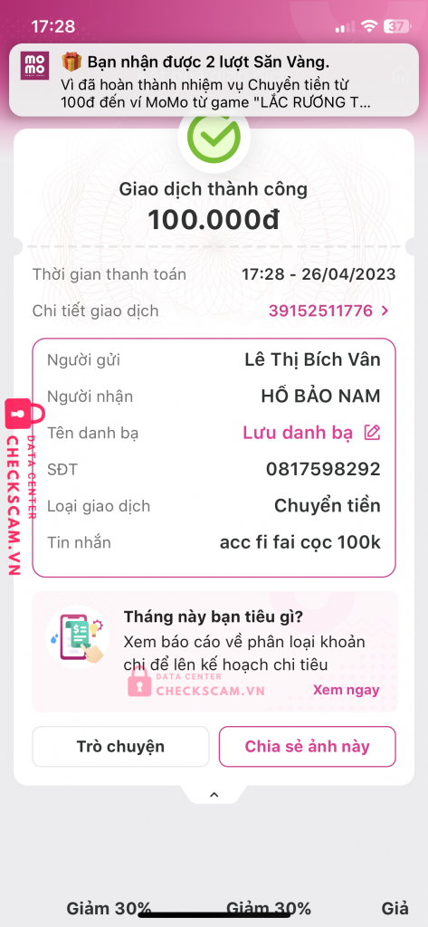 Scammer Alert: Hồ Bảo Nam Reported: November 16, 2024 Scammer Information Full Name: Hồ Bảo Nam Phone Number: 0817598292 Payment Gate: MoMo Payment Account: 0817598292 Category: Marketplace scams Source: Checkscam Evidence Files Report Description Tôi Chuyển Tiền Cho Nó , Xong Nó Gửi Acc cho tui , xong qua ngày sau nó đổi pass với chặn tôi Comments Your comment Add Comment No comments yet. Be the first to share your experience with this scammer.