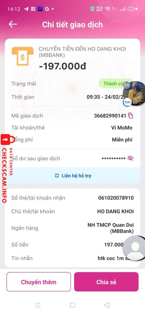 Scammer Alert: Hồ Đăng Khôi Reported: November 16, 2024 Scammer Information Full Name: Hồ Đăng Khôi Payment Gate: MBBank Payment Account: 061020078910 Category: Marketplace scams Source: Checkscam Evidence Files Report Description Scam 550k Comments Your comment Add Comment No comments yet. Be the first to share your experience with this scammer.
