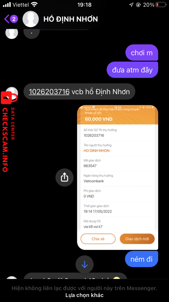 Scammer Alert: Hồ Định Nhơn Reported: November 16, 2024 Scammer Information Full Name: Hồ Định Nhơn Payment Gate: vietcombank Payment Account: 1026203716 Category: Marketplace scams Source: Checkscam Evidence Files Report Description buôn bán via lừa đảo Comments Your comment Add Comment No comments yet. Be the first to share your experience with this scammer.