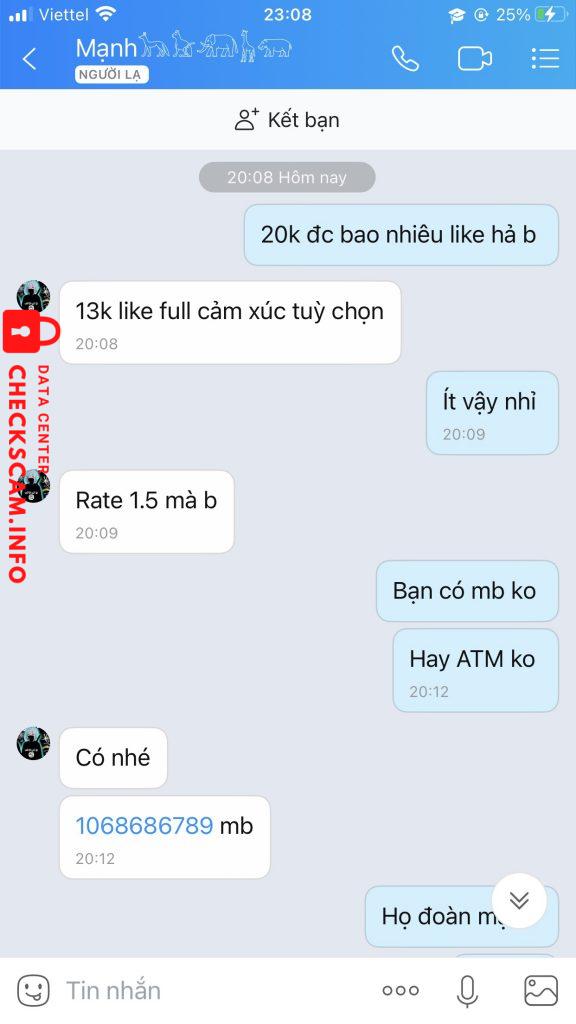 Scammer Alert: Hồ Đoàn Mạnh Reported: November 16, 2024 Scammer Information Full Name: Hồ Đoàn Mạnh Phone Number: 1068686789 Payment Gate: Mb bank Payment Account: 1068686789 Category: Marketplace scams Source: Checkscam Evidence Files Report Description Scam 20k like tây Comments Your comment Add Comment No comments yet. Be the first to share your experience with this scammer.