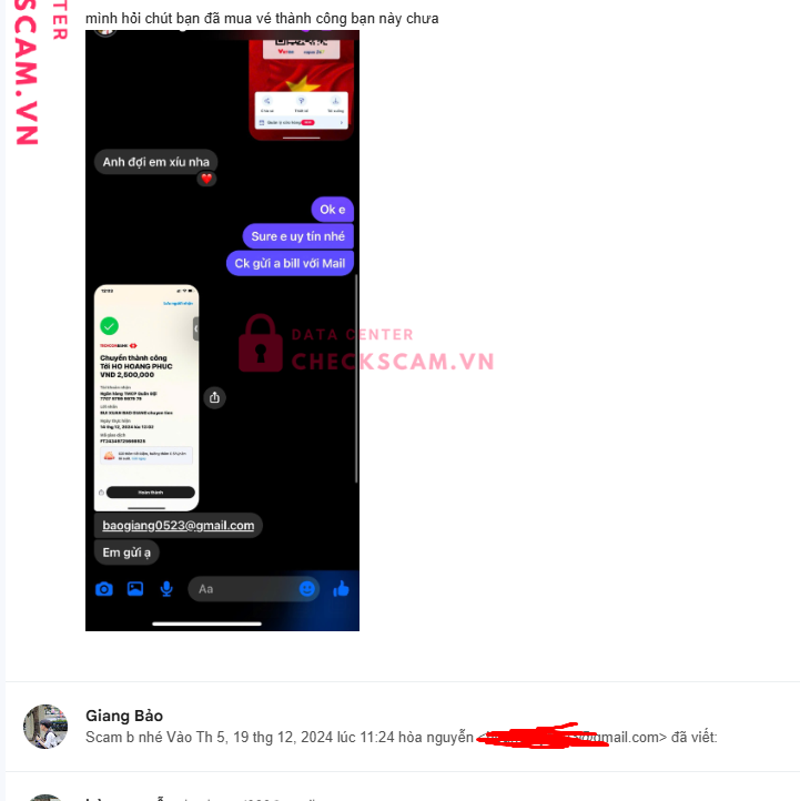Scammer Alert: ho hoang phuc Reported: March 7, 2025 Scammer Information Full Name: ho hoang phuc Payment Gate: Mbbank Payment Account: 77079799997979 Category: Marketplace scams Source: Checkscam Evidence Files Report Description 0787887823 https://www.facebook.com/phuc.hoang.766438 chuyên gia lừa đảo bán vé . Comments Your comment Add Comment No comments yet. Be the first to share your experience with this scammer.
