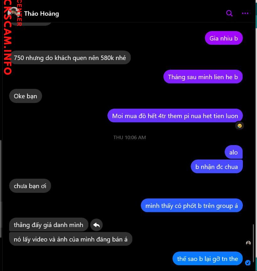 Scammer Alert: Hồ Hoàng Thảo Reported: November 16, 2024 Scammer Information Full Name: Hồ Hoàng Thảo Payment Gate: TP BANK Payment Account: 00000675345 Category: Marketplace scams Source: Checkscam Evidence Files Report Description Thanh niên lừa đảo bán Pi 4 4gb, đặt cọc trước 100k rồi block Comments Your comment Add Comment No comments yet. Be the first to share your experience with this scammer.