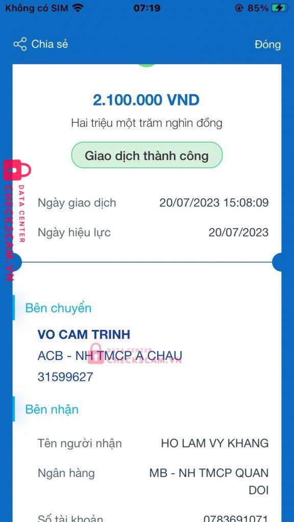 Scammer Alert: HO LAM VY KHANG
