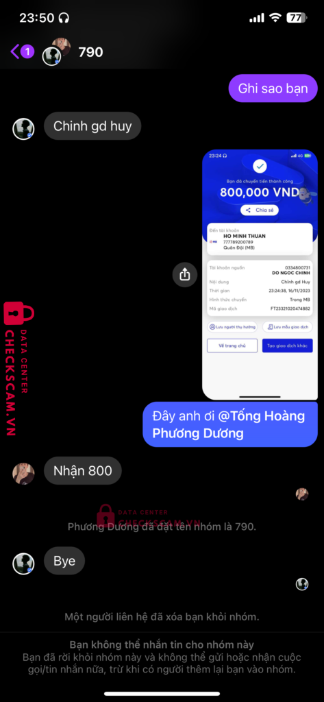Scammer Alert: Hồ Minh Thuận Reported: November 16, 2024 Scammer Information Full Name: Hồ Minh Thuận Payment Gate: MB Bank Payment Account: 777789200789 Category: Marketplace scams Source: Checkscam Evidence Files Report Description Scam acc 800k nó có 2 fb giả làm ad và người bán xong nhận tiền chặn luôn không giao acc Comments Your comment Add Comment No comments yet. Be the first to share your experience with this scammer.