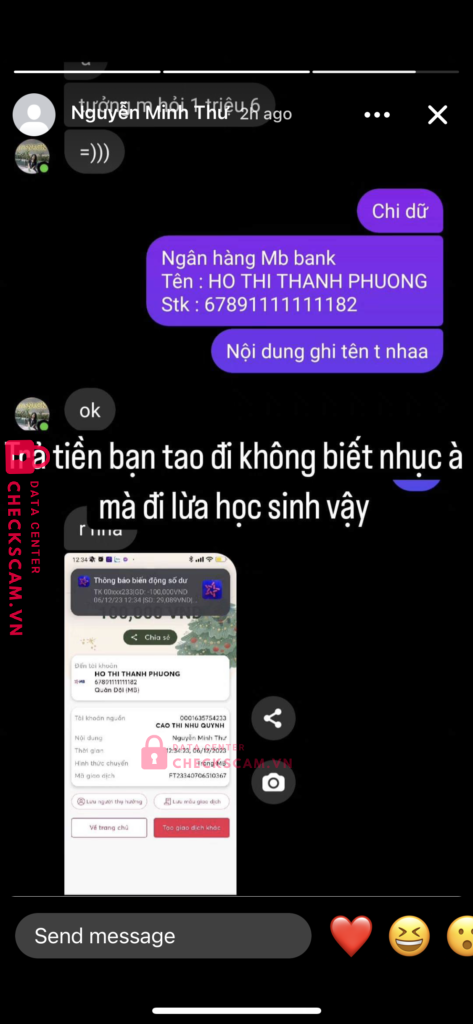 Scammer Alert: HO THI THANH PHUONG Reported: November 16, 2024 Scammer Information Full Name: HO THI THANH PHUONG Payment Gate: MB Bank Payment Account: 67891111111182 Category: Marketplace scams Source: Checkscam Evidence Files Report Description Hack fb của em mình sau đó mượn tiền Comments Your comment Add Comment No comments yet. Be the first to share your experience with this scammer.