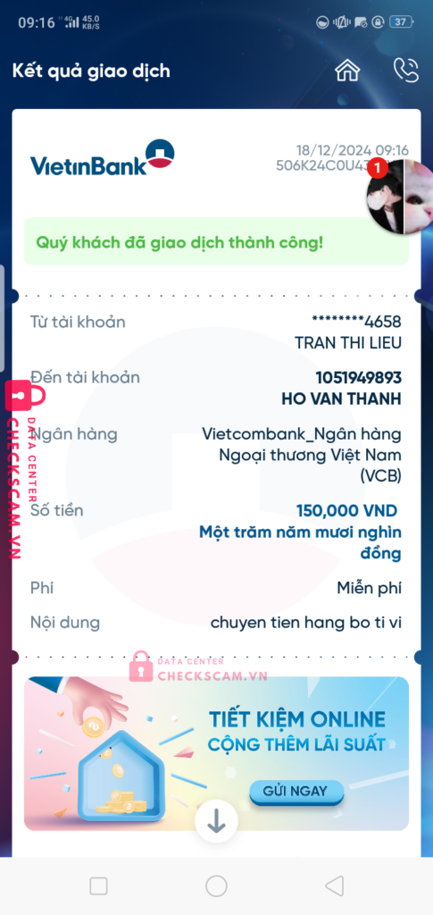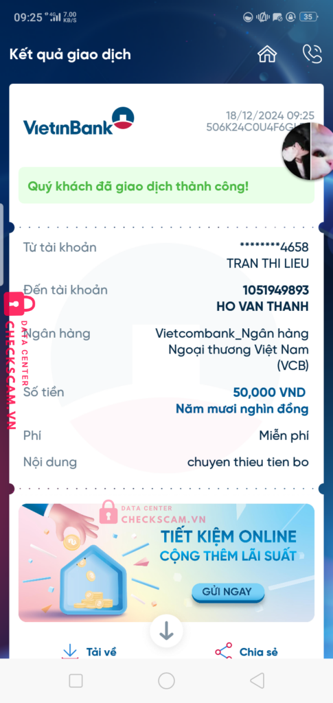 Scammer Alert: HO VAN THANH Reported: March 7, 2025 Scammer Information Full Name: HO VAN THANH Payment Gate: Vietcombank Payment Account: 1051949893 Category: Marketplace scams Source: Checkscam Evidence Files Report Description Tôi mong ad cho thg này chữ scam chứ tức Comments Your comment Add Comment No comments yet. Be the first to share your experience with this scammer.