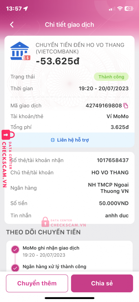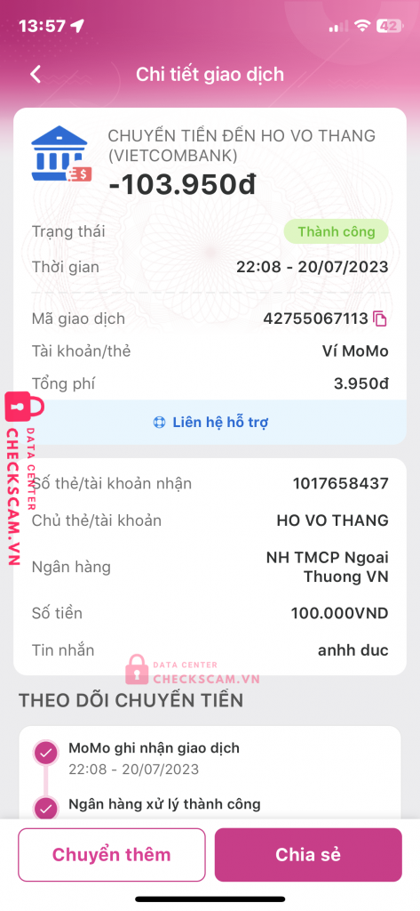 Mình có nhờ người này kéo hộ mình game tài xỉu sau đó người này bảo góp vốn vào với mình vốn mình 50 vốn người ấy 700 sau đấy thì người đấy đã đánh lên được 30 triệu mình k biết đấy là thật hay giả sau đó gửi ảnh 30 triệu cho mình nó bảo mình bank 1m5 cho nó để nó gửi mk cho mình vào lúc đó mình chỉ còn 100k thì mình bank cho nó bank xong nó chặn.Đoạn tin nhắn đấy mình k tìm thấy nữa